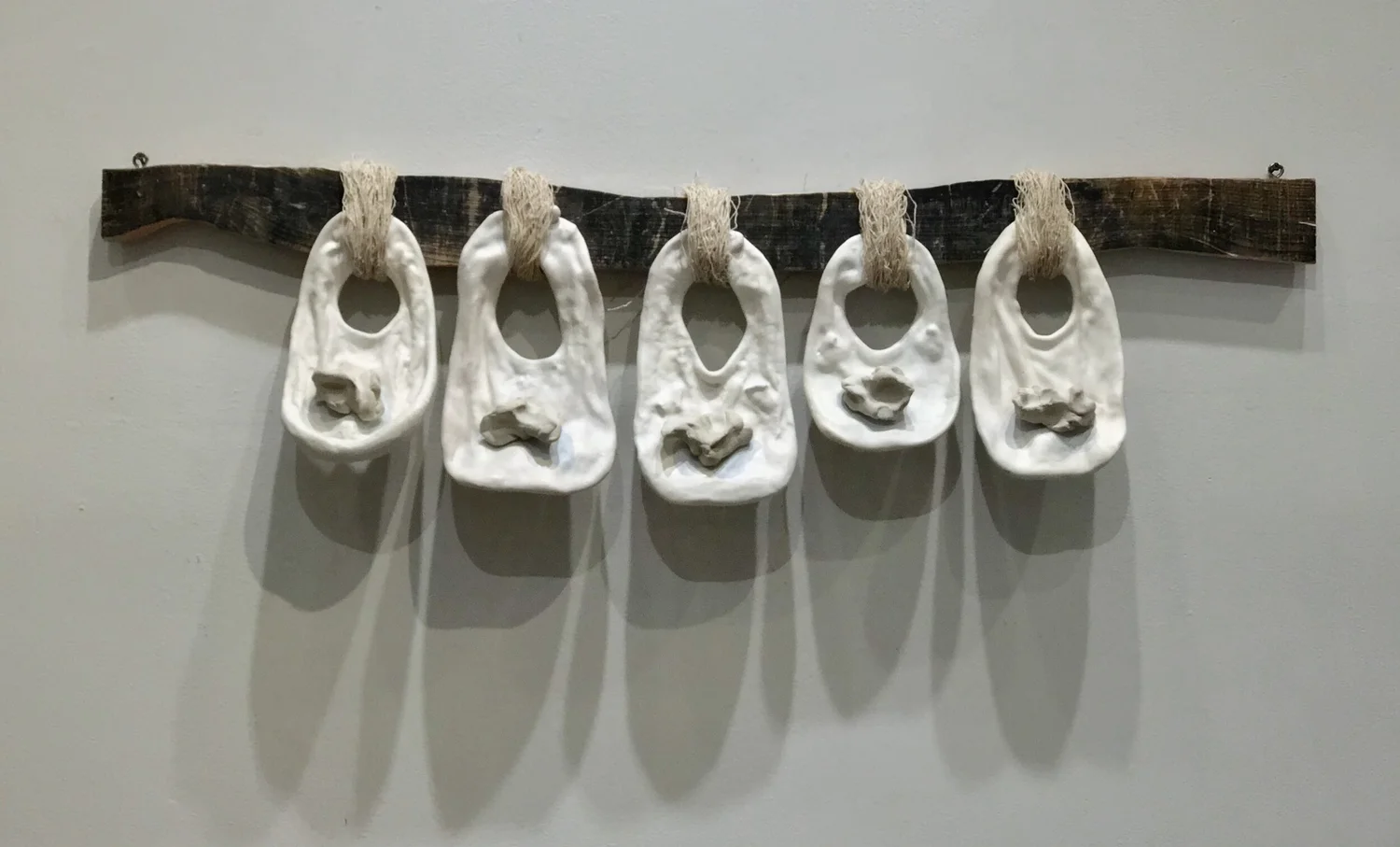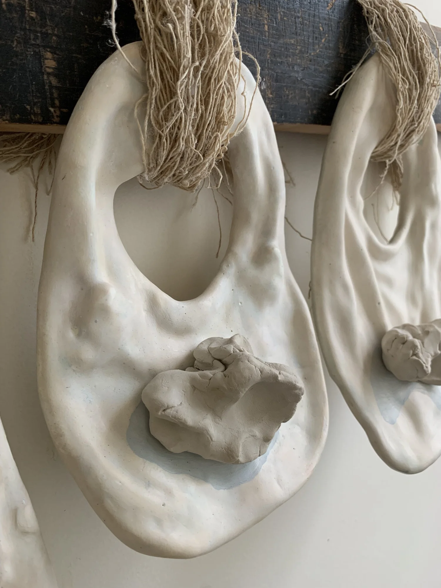 fabric, plaster, wood, clay, cotton, oil color 45 x 12 1/2 x 4 inches 2018 - 2019